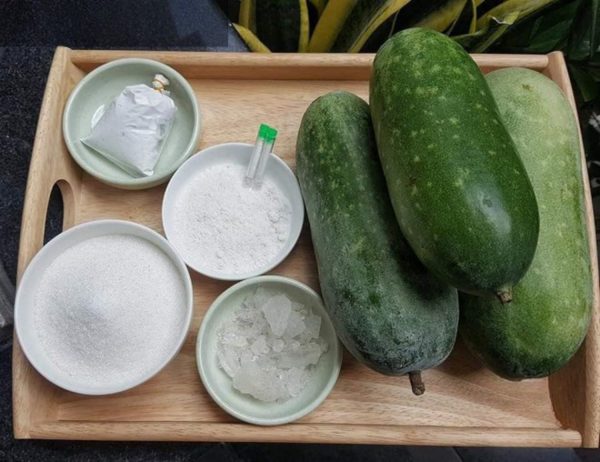 - Bí đao: 1kg (chọn quả non, ít ruột, vỏ xanh nhạt)