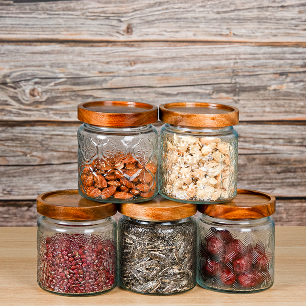 • Hũ thủy tinh vintage nắp gỗ: Tạo cảm giác ấm cúng, sang trọng, thích hợp trưng bày.