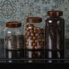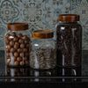 Hũ thủy tinh tròn nắp gỗ lõm vặn